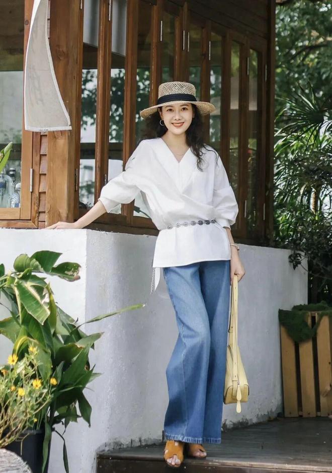 在阳光灿烂的午后,穿着白色衬衫与牛仔裤的她在宽敞的露台上,透过阳光洒在身上的光影,展现出了一种自然优雅的氛围。浅色的背包与明亮的凉鞋相互呼应,带着一份淡淡的惬意。▼