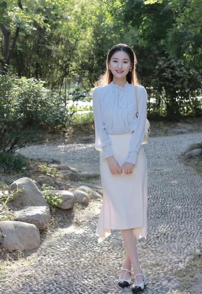 秋日的清晨,穿着淡蓝色衬衫与白色裙子的她在清新的空气中散步。搭配简约的黑白鞋与精致的手提包,展现出柔和的优雅气质。周围的绿意与她的装扮相得益彰,整个人仿佛与自然融为一体开云官方,散发着清新的魅力。▼